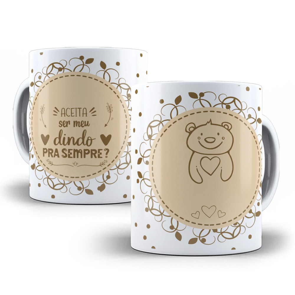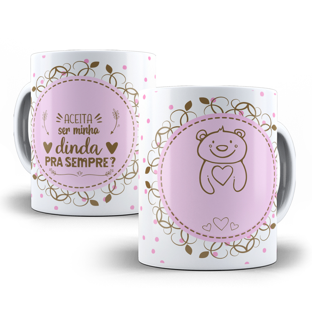 Kit 4 Canecas de Porcelana Personalizadas Dindo e Dinda - Modelo: 11